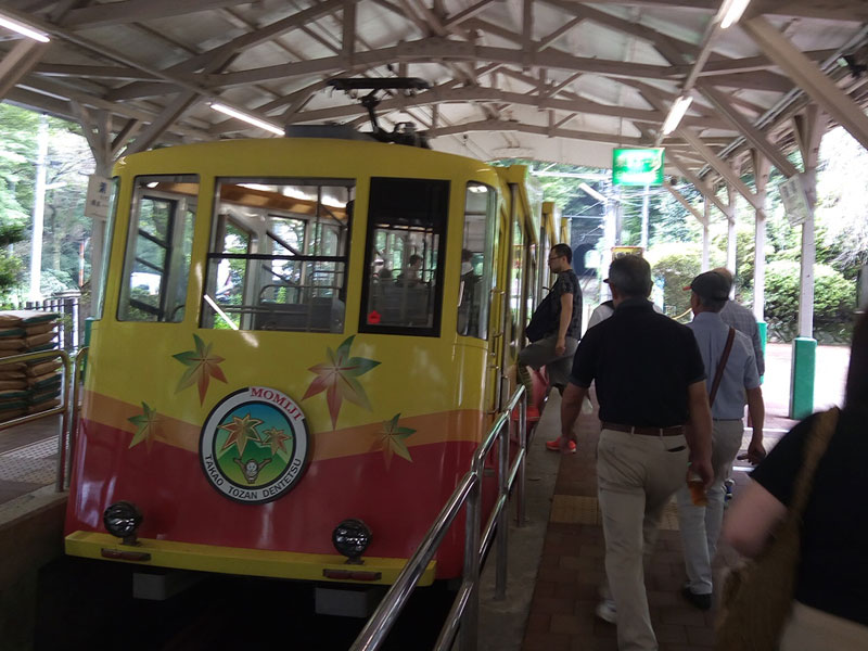 昼ごろの清滝駅出発だった事もあり、ケーブルカーに乗りました。始めて段差のある車両に乗りました。