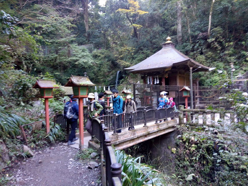 大山橋の手前では、昔ここは海の底で海底が隆起して高尾山になった事を物語「硯岩」の前を通りました。