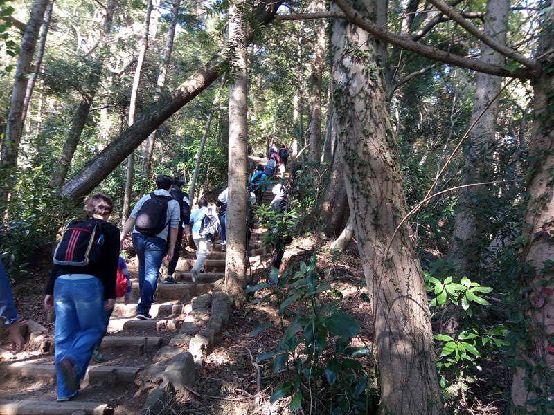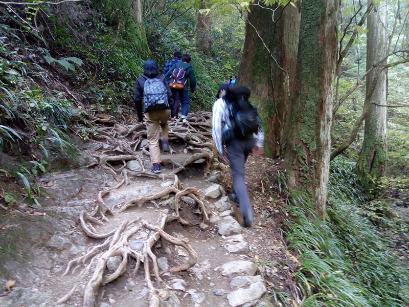 沢から離れると長く、きつい木段状の登りが続きやがて3号路、5号路の分岐に出ました。。
