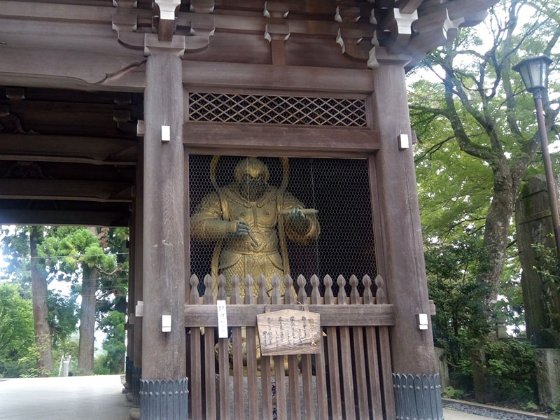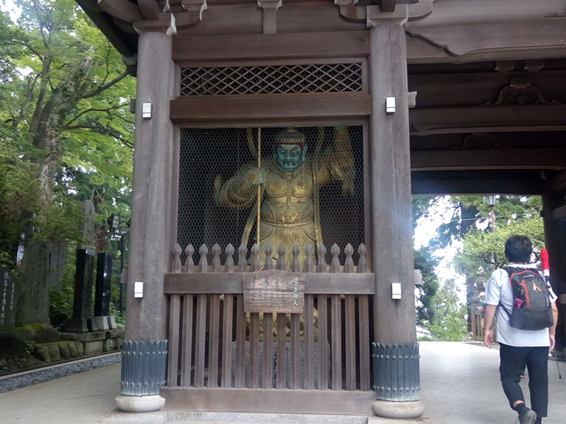 薬王院の入口に立つ威厳に満ちた楼門です。 総檜造りの重厚な山門です。多聞天・広目天・増長天・持国天の仏教四大守護神の像が安置されています。 境内は福徳弁財天や天狗社など江戸時代までの神仏習合の伝統を色濃く残しています。